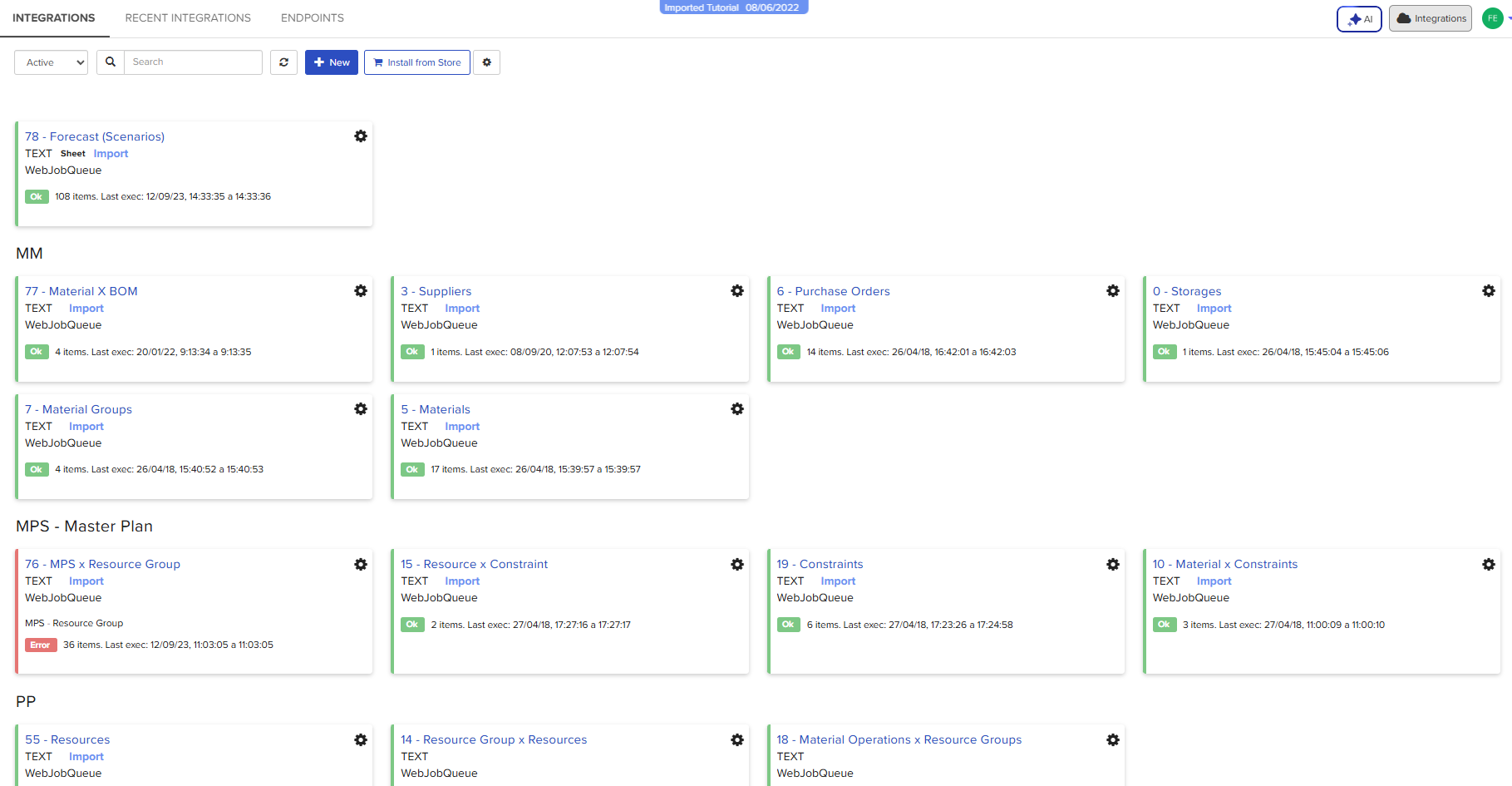 Importe OPs, pedidos de clientes e previsões de longo prazo.